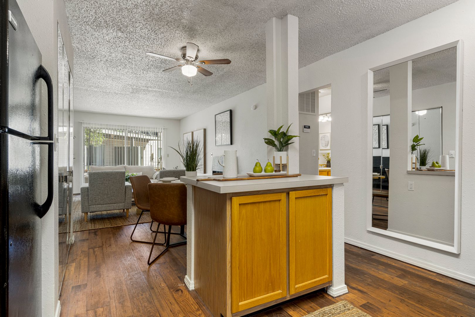 This Lavish 1 bedroom apartment home is accompanied with natural sunlight through its veranda sliding doors. The country-like open kitchen is filled with an abundant amount of cabinet space and a large island with extra storage for cookware. Deposit Amounts May Vary.